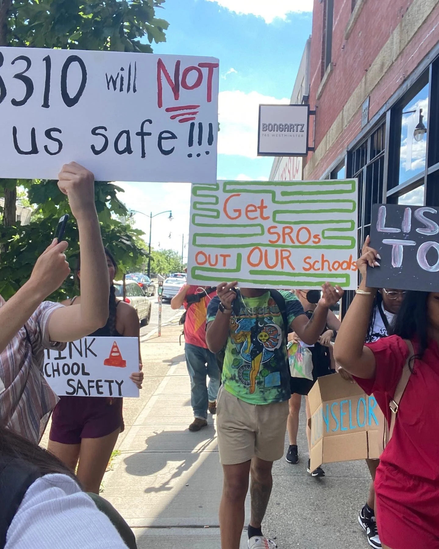 On Jun 14th, 2022, ARISE and PSU co-coordinated a march on the statehouse to oppose House Bill 8310, which proposed placing 2 officers in every Rhode Island public school.