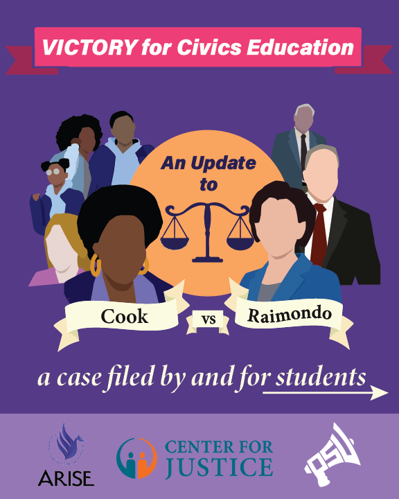 Deep love to the young folks of ARISE and PSU who were courageous enough to be named plaintiffs and took on this fight, as this win would not be possible without them. Deep love to Jennifer Woods and the folks at the Center for Justice who made this happen. Deep love to Michael Rebell and his dedication to this mission. Deep love to all our community, our parents, youth, and organizers, for coming out and fighting to achieve equitable education!