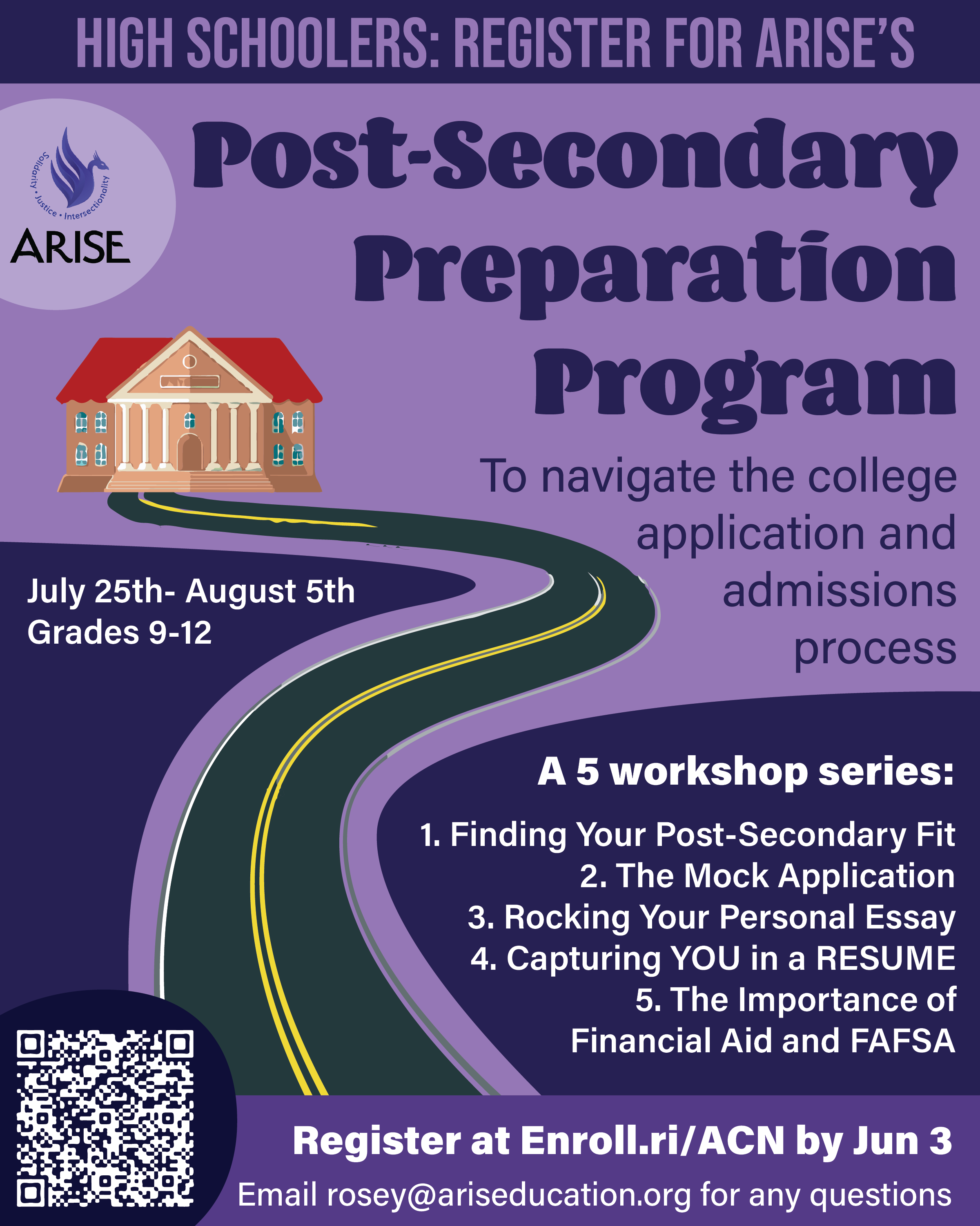 Youth (for students 8-12th grade) will need to register for the All Course Network through Enroll RI. You can create an account and register for the course here. This program will be catalogued as “Post-Secondary Access Workshop Series”.