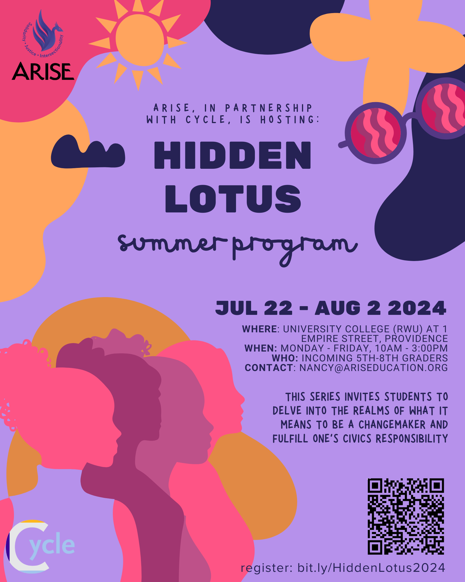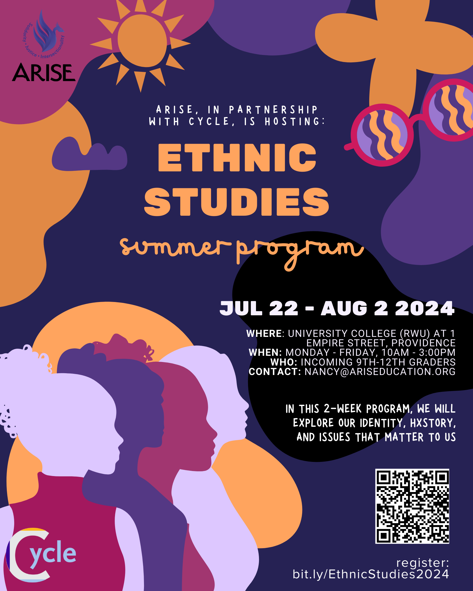 July 22nd - Aug 2nd, 2024 M-F 10:00 am-3:00 pm, in partnership with CYCLE, at Roger Williams University